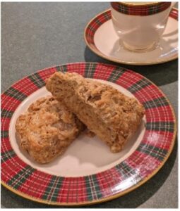 Whatever one believes about where treacle came from, it is agreed that it is a very old ingredient in Scottish recipes. Scones are such a traditional Scottish food they would be trite if they weren’t so wonderfully varied and tasty.  The old, simple recipes are often the best.  This one calls for treacle and specifically identifies it as molasses.  It makes a lightly sweetened and spiced scone.